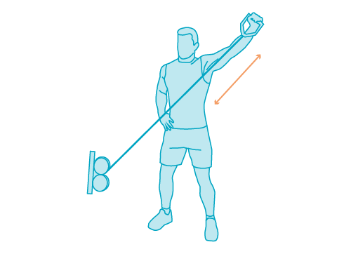 Este ejercicio introduce un patrón diagonal que reproduce movimientos funcionales del hombro.