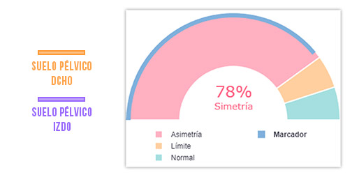 Existe una simetría insuficiente entre los músculos intracavitarios. Recuerda que el umbral a cumplir en condiciones de normalidad es el 80% de simetría.