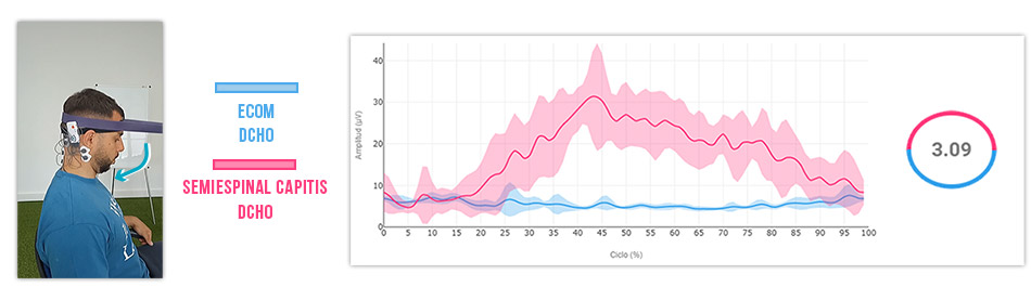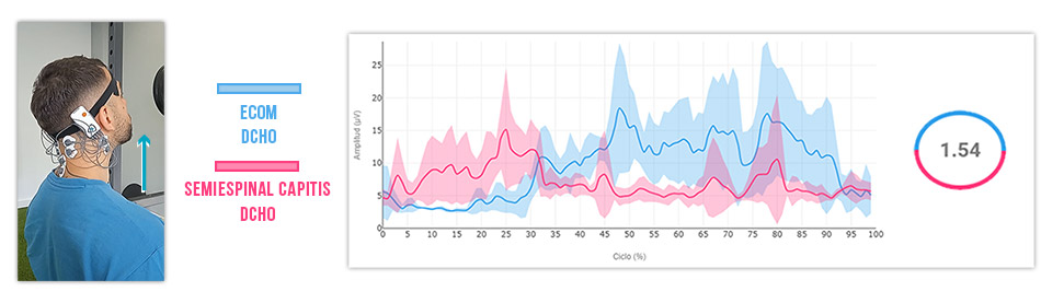 Estudios recientes con EMG han revelado que los pacientes con dolor de cuello por SCS muestran un aumento en la amplitud de activación en los músculos superficiales esternocleidomastoideo y escaleno anterior, una reducción en la activación de los músculos cervicales profundos y una disminución en el rango de movimiento en comparación con las personas sin dolor de cuello (3).