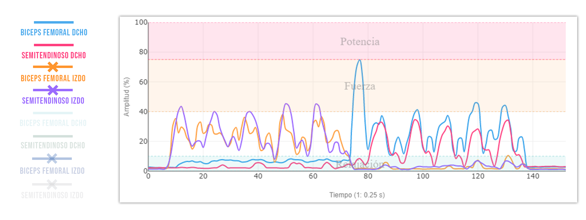 Estos son los resultados de la pierna izquierda, la que refería molestias al terminar el entrenamiento.