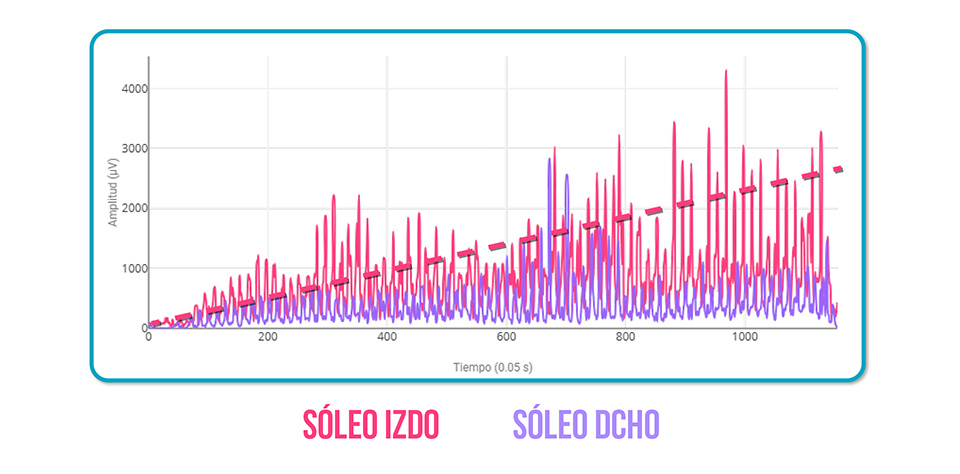 Una activación creciente del sóleo izquierdo a medida que avanza la carrera.