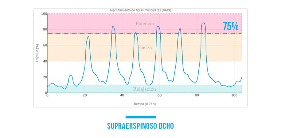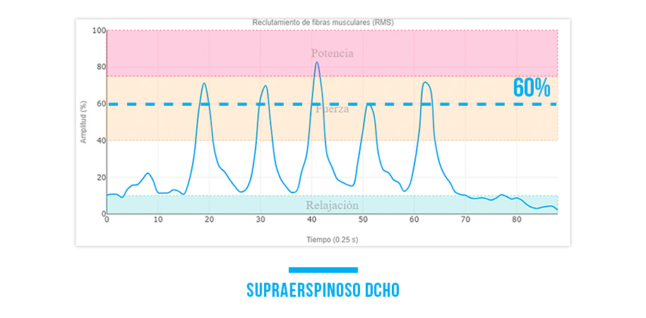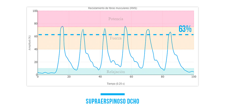 Esta tecnología permite visualizar y medir la actividad muscular en tiempo real, garantizando que el supraespinoso esté consiguiendo niveles de fuerza durante los ejercicios.