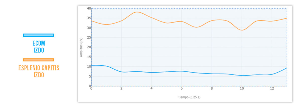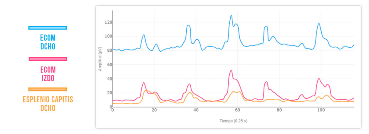 Caso de estudio: Pedro, un diseñador gráfico, pasa largas horas frente a su estación de trabajo, a menudo encorvado sobre su escritorio con los hombros tensos y la cabeza proyectada hacia adelante. Después de varios meses, comienza a experimentar dolor persistente en el cuello y una sensación de rigidez. Su evaluación electromiográfica revela un tono muscular significativamente elevado en sus trapecios superiores y en el ECOM, resultado directo de la postura inadecuada y el uso excesivo.