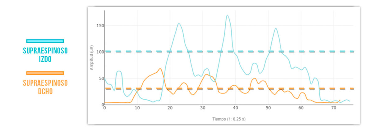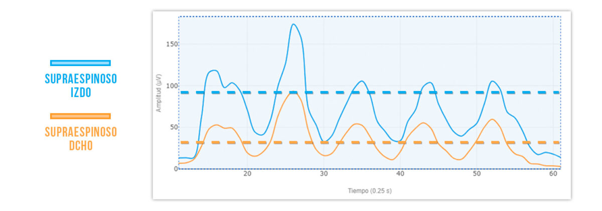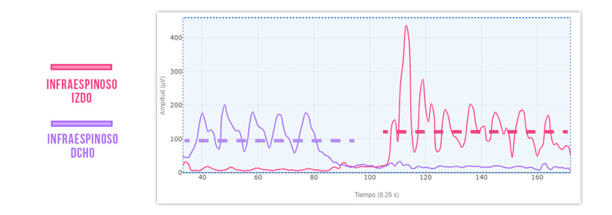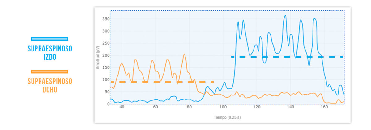En ese caso, una de las hipótesis más comunes a la hora de evaluar el supra será que la actividad muscular del supraespinoso del lado con dolor será menor que la del lado sano: