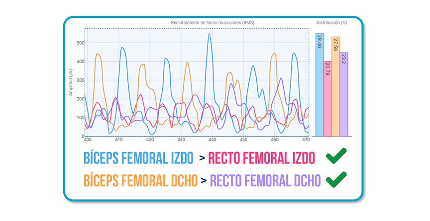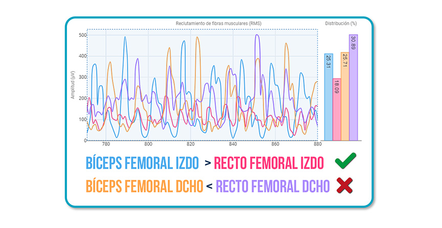 Cuando el recto femoral domina, es decir, activa más que el bíceps femoral, el patrón motor se vuelve rígido y poco eficiente.