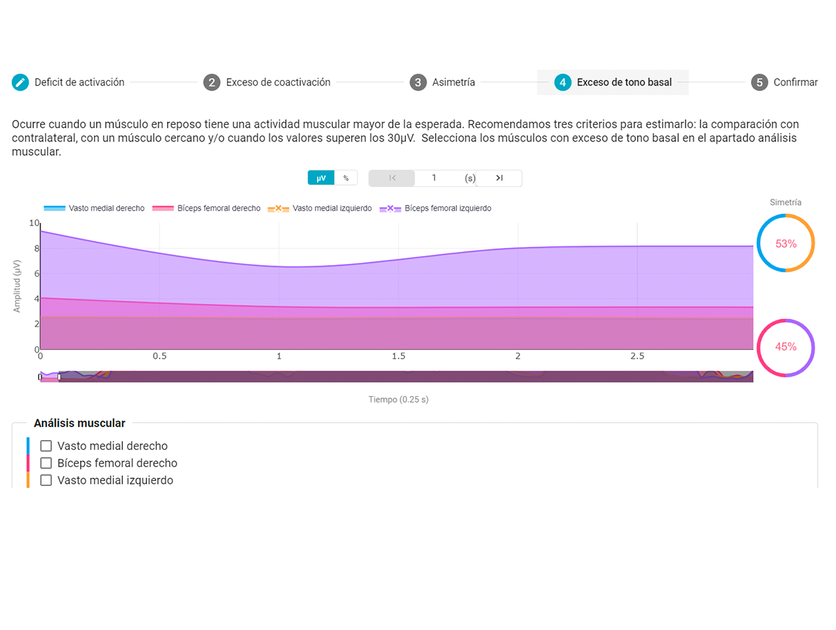 Identify muscles with deficits or excess activation, asymmetry, or tone abnormalities.