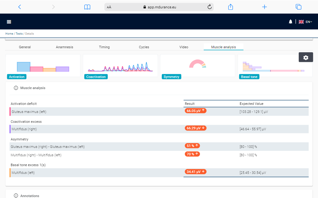 Create videos with your clients' muscle activity to remember all the details. Share them with your patients using the sharing function.