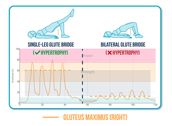 The single-leg version shows higher activation of the gluteus maximus, making it a more efficient choice if your goal is to target that muscle.