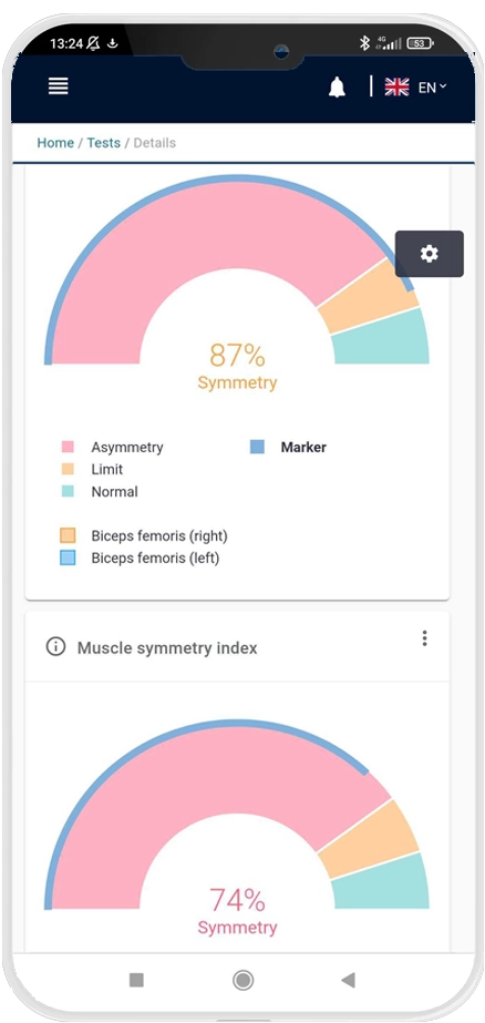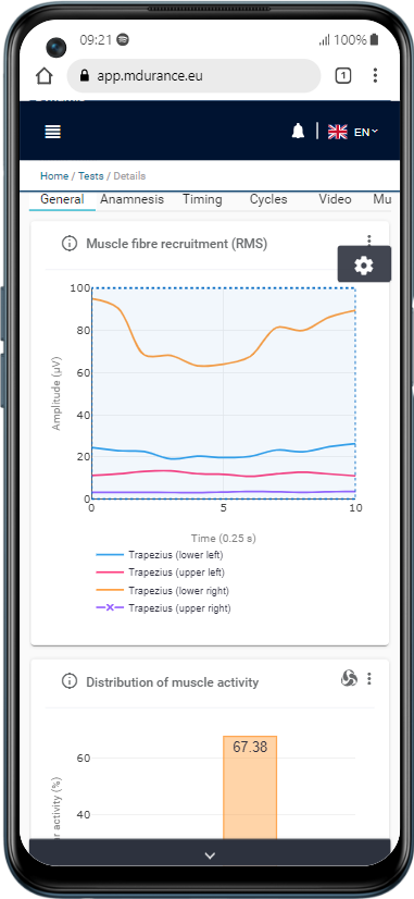 With mDurance, you know which muscles need more activation (muscles with deficits) and which need to participate less (muscles with excess) to achieve successful rehabilitation.