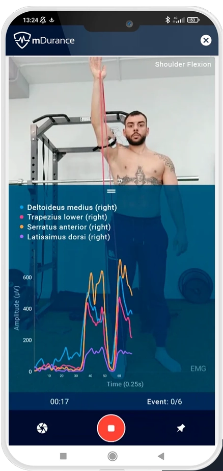 Use the video function of the mDurance app to capture all your patient’s movements along with muscle activity on your mobile or tablet.