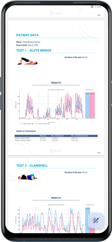 • PDF muscle activity reports provide a clear understanding of the patient’s current muscle condition and the necessary steps for improvement.