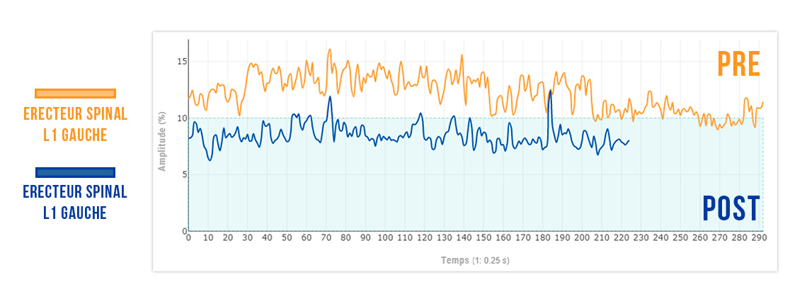 Mesurez à nouveau et vérifiez si la relation inverse existe dans vos muscles : moins d’activité superficielle avec une activité plus profonde.