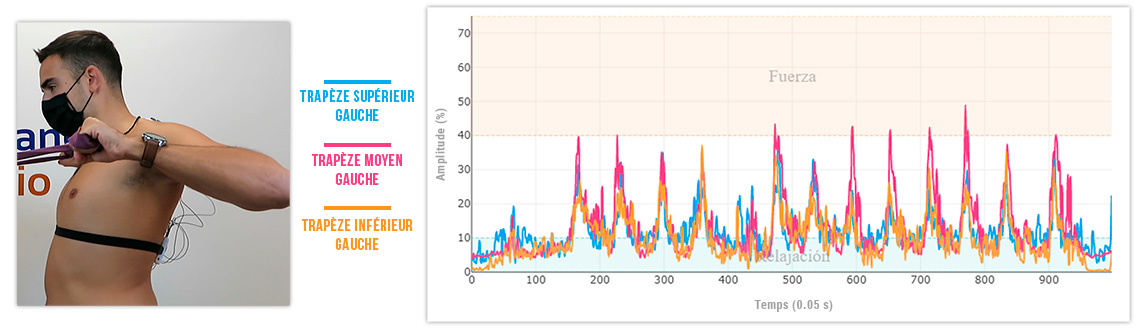 Pour connaître l’intensité de travail du trapèze, des contractions isométriques volontaires maximales (MVC) ont été enregistrées par des tests de force manuelle :