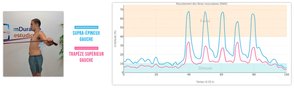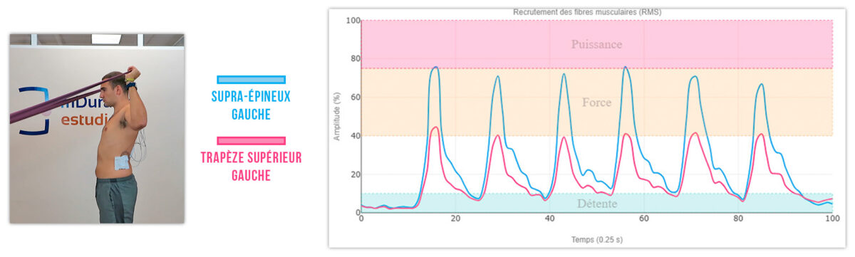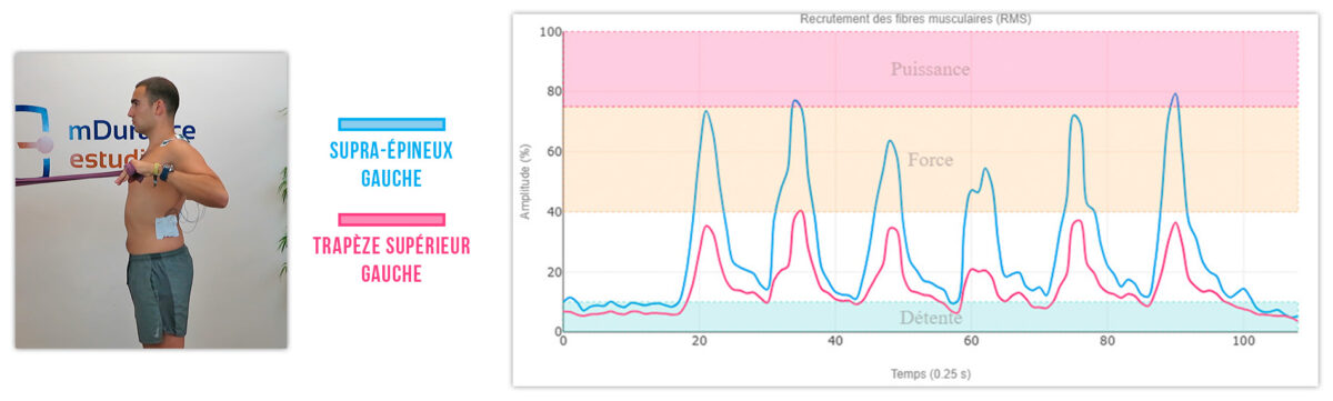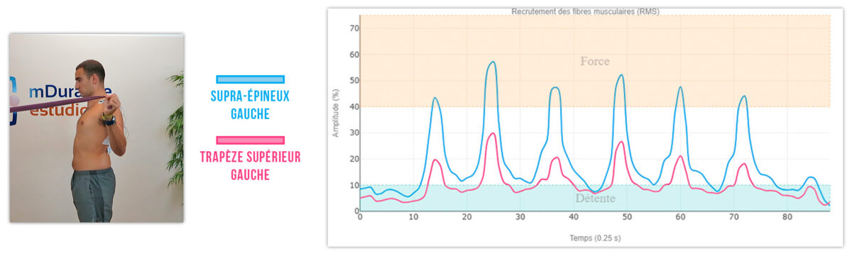 Le supra-épineux frôle des niveaux de puissance, tandis que le trapèze supérieur continue de moins s’activer (sans atteindre des niveaux de force).