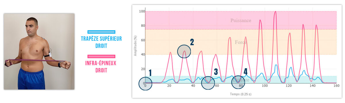 - 3. Le trapèze supérieur NE se relâche pas entre les répétitions et a un timing différent de l’infra-épineux (X).