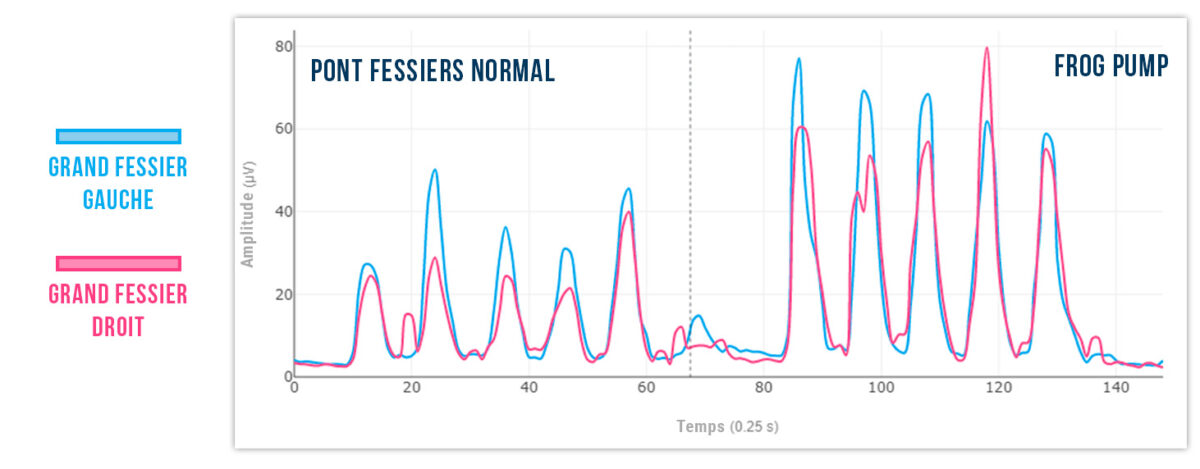 50 % de plus d’activité dans les deux fessiers en utilisant le frog pump.