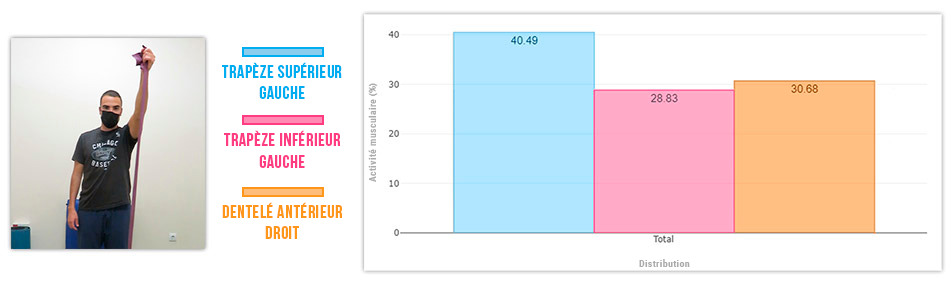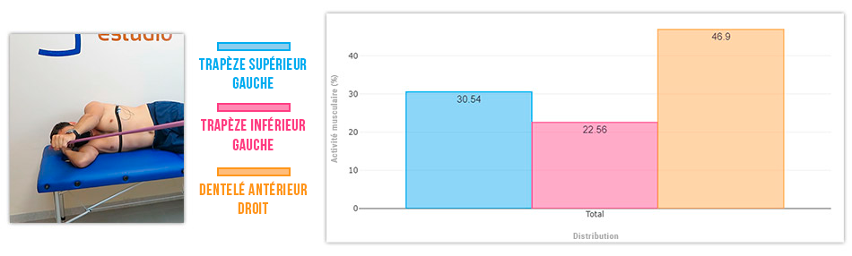 Ce cas est d’autant plus frappant qu’il permet d’inverser complètement la synergie. Le dentelé antérieur s’active principalement lors de la flexion en décubitus latéral, tandis que le trapèze supérieur redevient le protagoniste pendant la flexion en position debout.