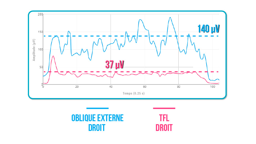 Conclusion : Dans cette variante, l’activation de l’oblique externe est inférieure à celle de la version traditionnelle, tandis que celle du TFL varie très peu.