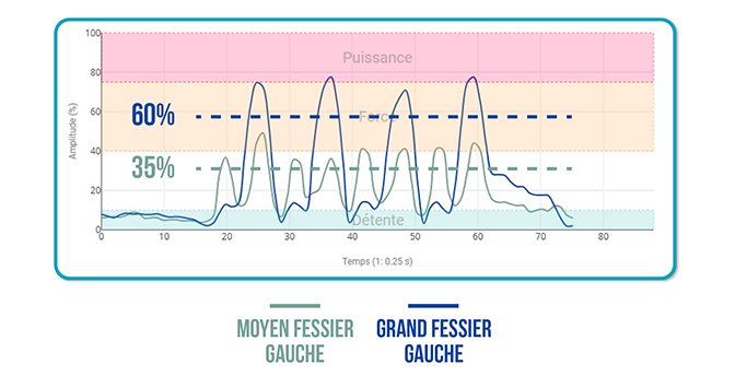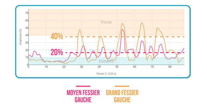 Résultats d’activation musculaire (mesurés par EMG) :