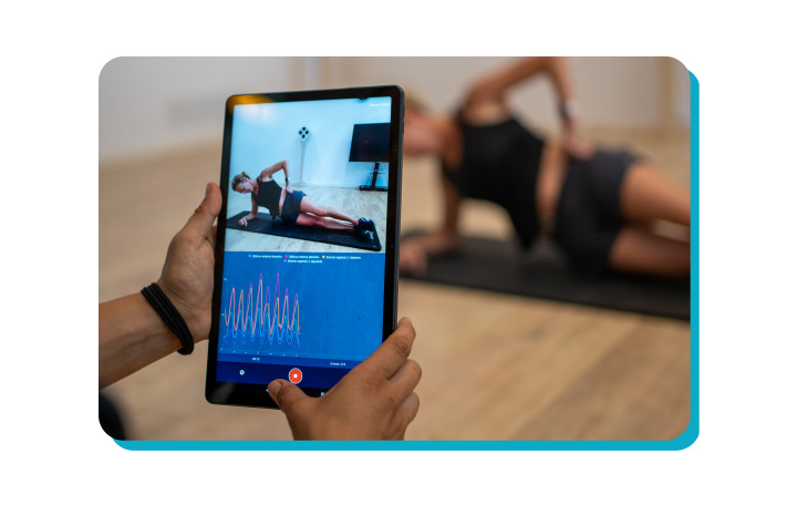 Con mDurance, grabas simultáneamente el vídeo del movimiento y la activación muscular.